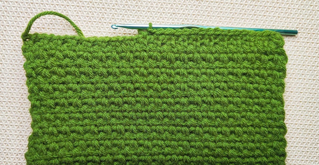 - A partire dal giro 2: Lavora solo negli spazi creati dalle catenelle, fai un punto basso in ogni spazio, fai 1 catenella e ripeti lungo tutto il giro. Fai 2 catenelle e gira il lavoro. Continua a ripetere il giro 2 fino a ottenere un quadrato o raggiungere la dimensione desiderata.